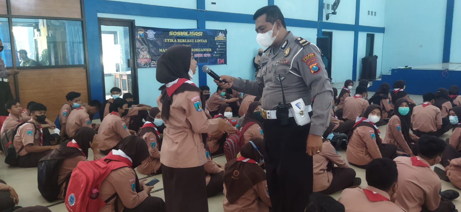 Guna menekan angka pelanggaran dan kecelakaan, Satlantas Polres Kediri Kota gencar melakukan Pendidikan Masyarakat Lalu Lintas (Dikmas Lantas) bagi pelajar, seperti kegiatan Dikmas Lantas di Aula SMKN 1 Kota Kediri, Jumat (7/1/2022) lalu dalam program Police Goes to School.
