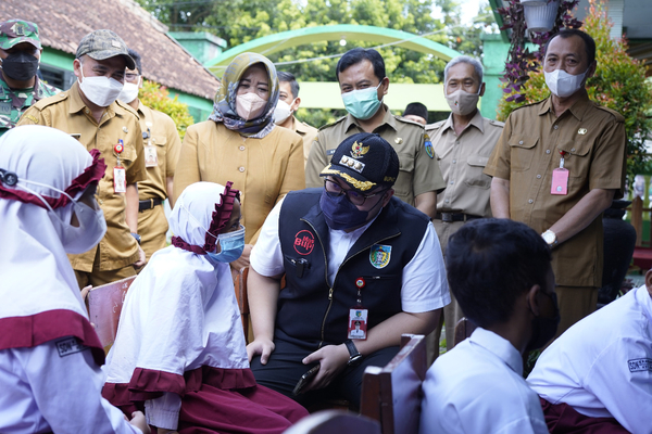 Bupati Kediri Hanindhito Himawan Pramana saat Meninjau Vaksinasi anak di SD Negeri 1 Krandang Kecamatan Kras