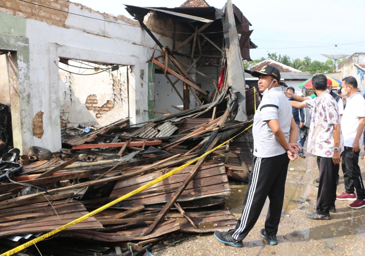 Bupati Sumenep Ra Achmad Fauzi, SH, MH meninjau lokasi kebakaran di Pasar Lenteng, Kecamatan Lenteng, Jumat (1/4/2022) dini hari kemarin.