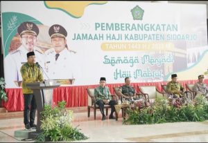 Sebanyak 1254 calon jamaah haji (CJH) asal Kabupaten Sidoarjo mulai diberangkatkan oleh Bupati Sidoarjo H. Ahmad Muhdlor Ali, S.IP di Pendopo Delta Wibawa Sidoarjo, Minggu (19/6).