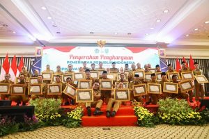 Penghargaan diserahkan oleh Gubernur Jawa Timur Khofifah Indar Parawansa didampingi Kepala Kanwil Ditjen Perbendaharaan Provinsi Jawa Timur Kemenkeu RI Taukhid dalam acara Penyerahan Penghargaan Pemerintah Republik Indonesia atas capaian WTP kepada Pemerintah Provinsi Jawa Timur dan Pemerintah Kabupaten/Kota di Jawa Timur.