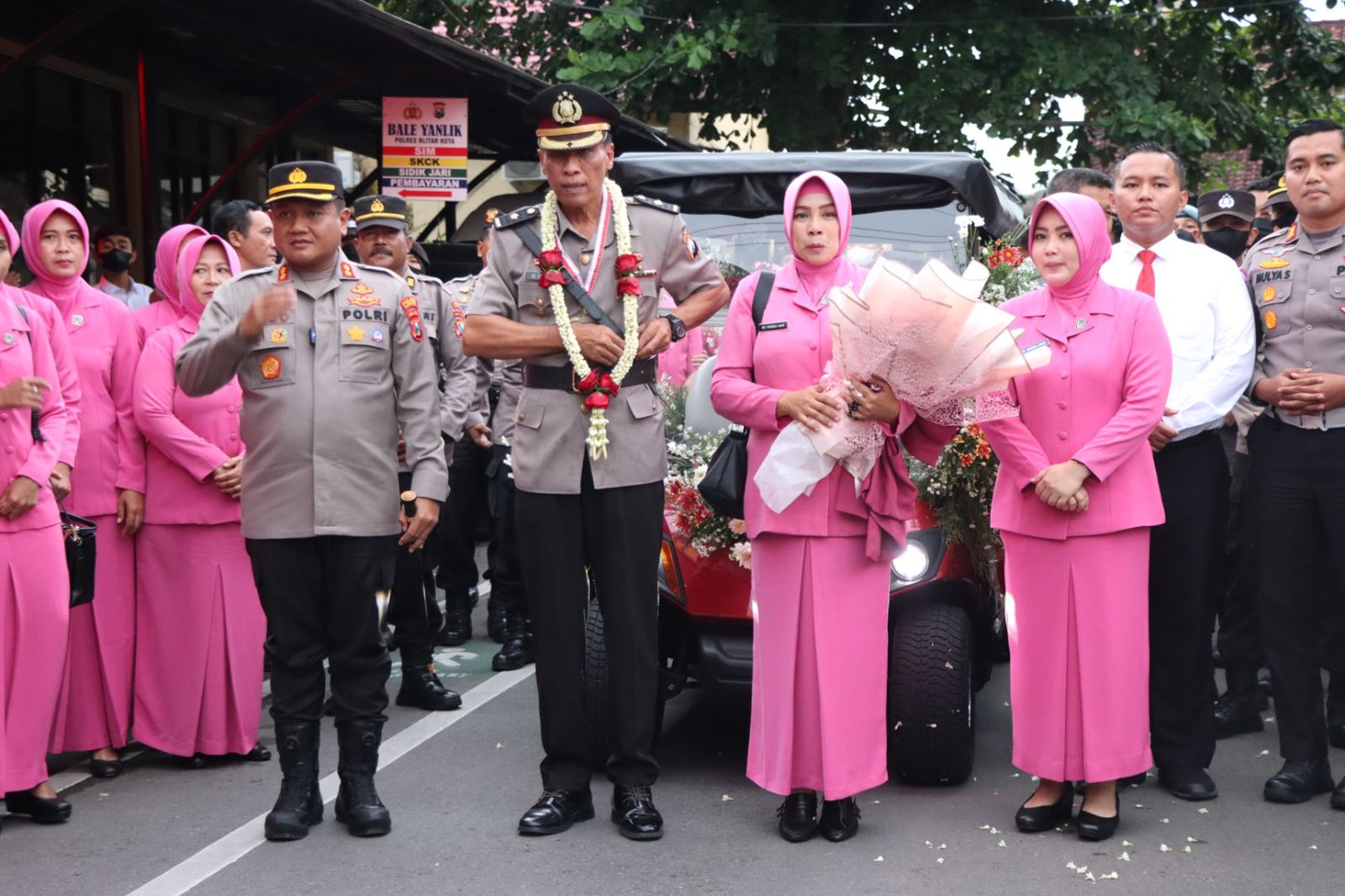Selanjutnya Kompol Hari Sutrisno diarak menuju depan gerbang Mapolres sesuai dengan tradisi menggunakan Mobil Golf Car dan Kapolres Blitar Kota sebagai driver serta disaksikan oleh semua anggota Polres Blitar Kota. Sebelum memasuki gerbang dilakukan penghormatan jajaran pasukan dari sat Samapta, hal tersebut merupakan tradisi rutin dilingkungan Polres Blitar Kota saat ada anggota Polres Blitar Kota yang memasuki masa pensiun.