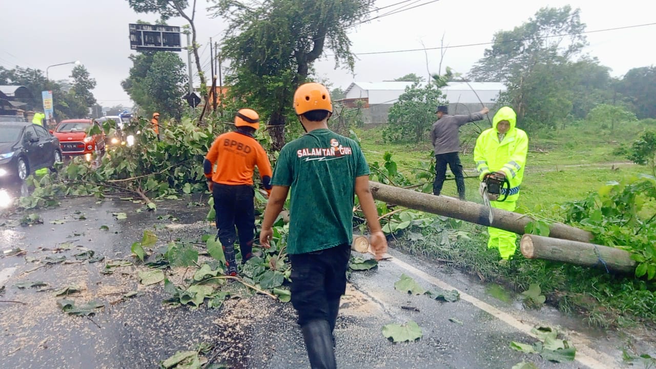 “Kami mendapatkan Informasi adanya pohon yang tumbang di Jalan Raya Poluhan dan Jalan Desa Krejen Kecamatan Srengat dan kondisinya sempat mengganggu pengguna jalan raya tidak bisa lewat,”ujar KSPKT Apitu Warih Gunawan