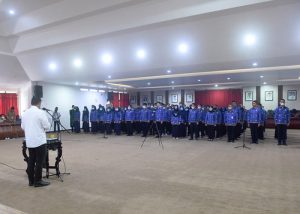 Wali Kota Kediri Abdullah Abu Bakar Senin (26/12) diruang Jayaboyo Pemerintah Kota Kediri mengambil Sumpah/ Janji 500 Aparatur Sipil Negara (ASN) yang pelaksanaannya dilakukan secara hybrid.