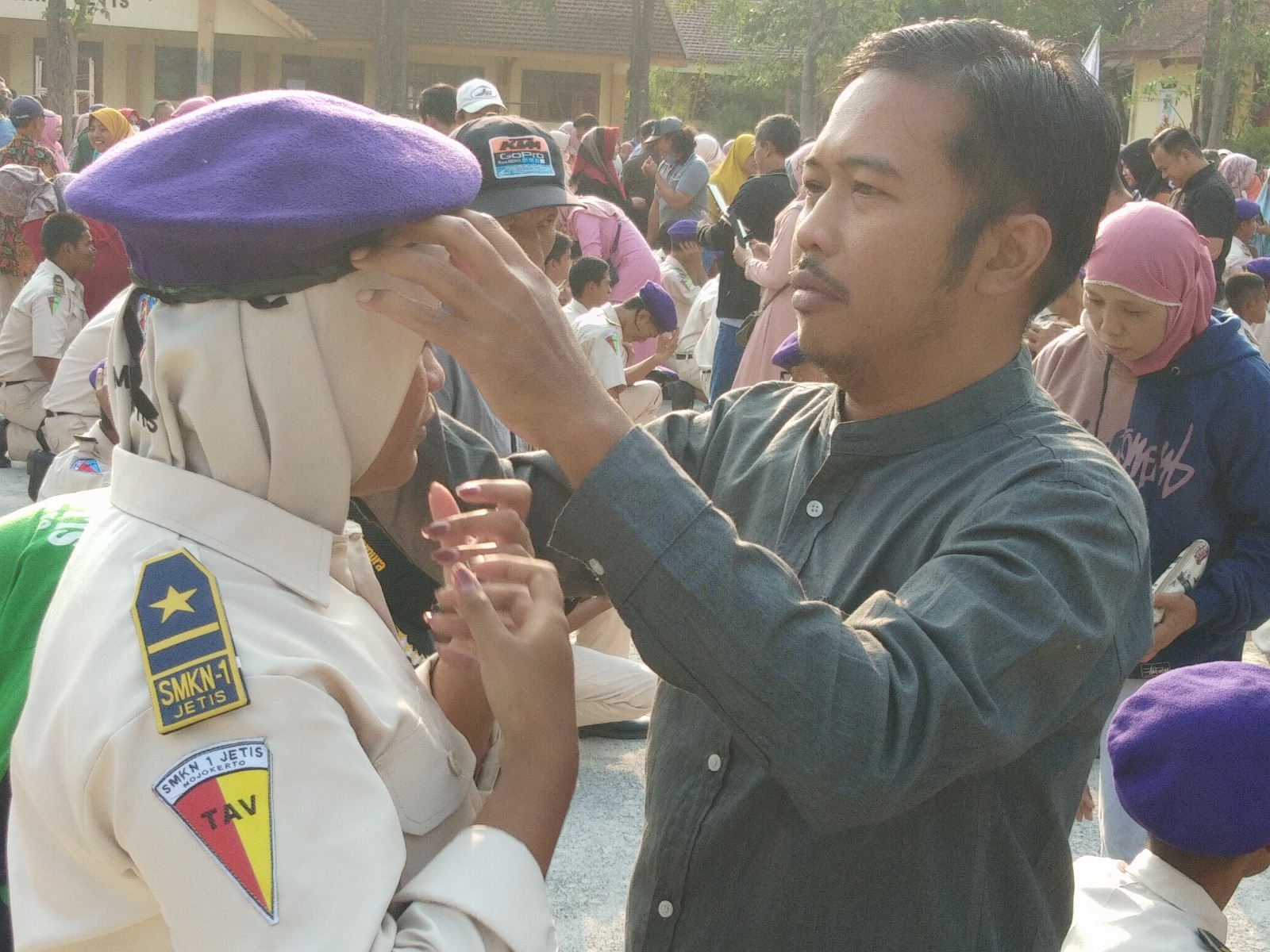 Kepala Sekolah SMK Negeri 1 Jetis Drs. Ladi, MM, Kegiatan pembaretan merupakan tradisi SMK Negeri 1 Jetis Mojokerto setiap tahunnya sebagai pengukuhan siswa baru.