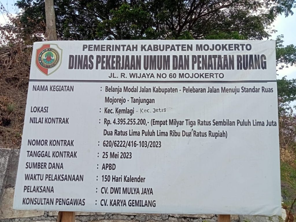 Peningkatan infrastruktur yang menghubungkan antar wilayah terus di kebut Pemerintah Kabupaten Mojokerto, salah satunya pelebaran ruas jalan Mojorejo – Tunjungan.
