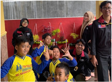 Kemudian seluruh siswa diarahkan untuk keluar kelas dan duduk perkelompok dan memulai mengecat botol plastik yang sudah diberikan oleh panitia. Lalu, botol yang sudah dicat dikeringkan dan diisi oleh pupuk dan dilanjut dengan menanam tanamannya. Seluruh panitia ikut serta dalam membantu dari awal hingga proses akhir yaitu menggantung seluruh tanaman hias menggunakan benang wol. Kegiatan Pengabdian Masyarakat oleh Mahasiswa (PMM) ini adalah untuk mengaplikasikan hilirasi hasil penelitian Universitas Muhammadiyah Malang (UMM).