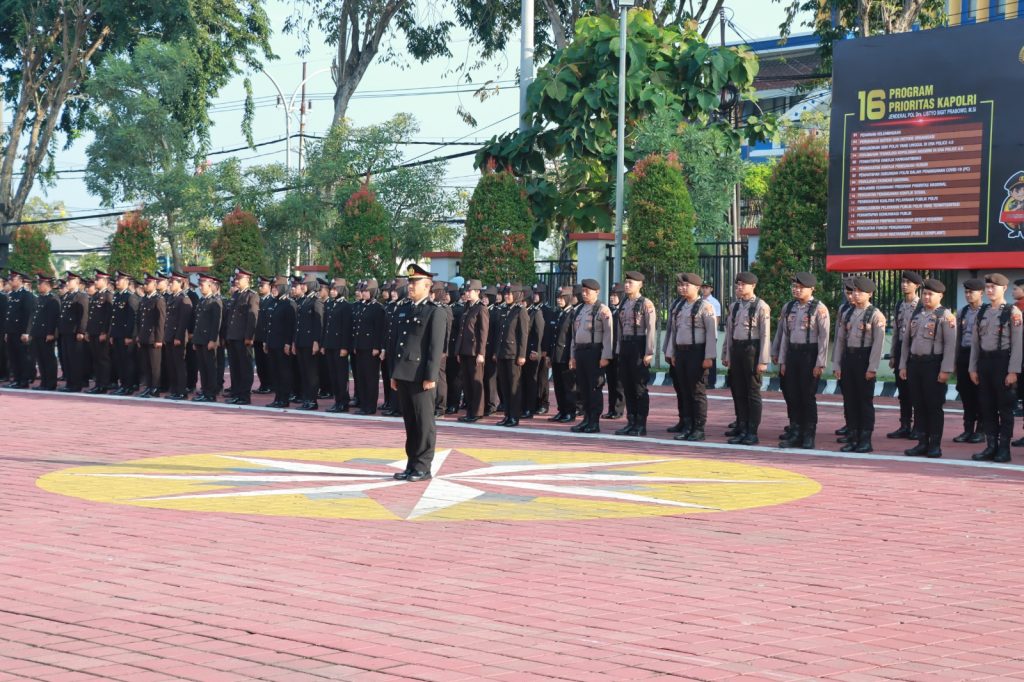 Upacara berlangsung secara khidmat dan dipimpin langsung oleh Kapolres Gresik, AKBP Rovan Richard Mahenu, selaku inspektur upacara.